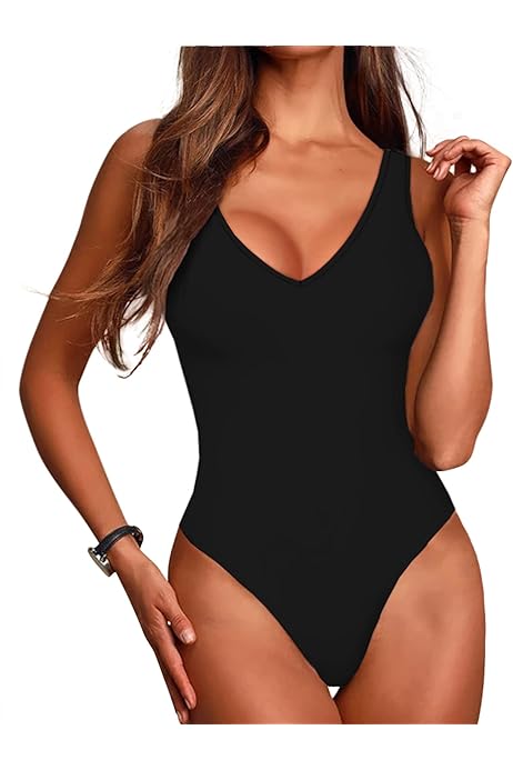Amazon Com Lagshian Women S Sexy Summer Bodycon Sleeveless Tank Top One Piece Leotard Bodysuit Black Clothing Shoes Jewelry